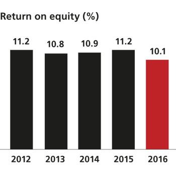 The performance was particularly satisfying because the operating environment was challenging. Unlike the previous year, we did not benefit materially from interest rate and currency movements in 2016. China continued to affect our performance, causing a drag of four percentage points to total income. Our performance was the result of double-digit growth from other businesses as we nimbly captured opportunities in an environment of slower economic growth.
