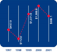 2001: S$999.1 million (-28.1%) 2000: S$1,388.8 million |