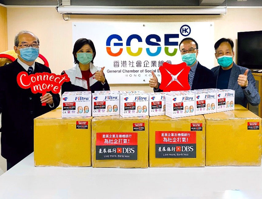 企業銀行部亦主動與Alison聯絡,希望能採購40,000個口罩捐贈予香港社會企業總會。城中超過200多家的社企及後獲分配了這批口罩。