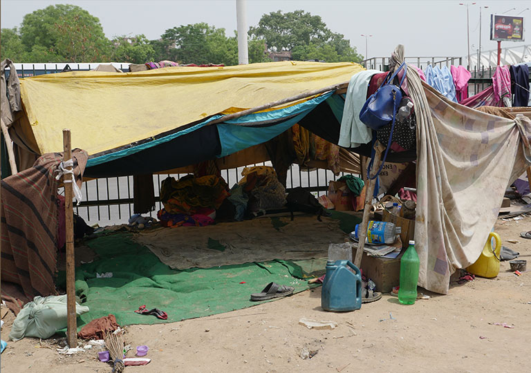 Pictured: Makeshift homes cannot keep the intolerable cold or heat out, causing extreme discomfort to its inhabitants.