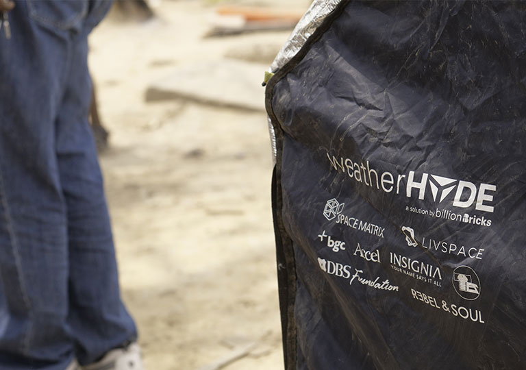 Billion Bricks created weatherHYDE, a unique insulated shelter designed to protect homeless families from the extreme elements of cold and heat during Mumbai’s harsh winter and summer. One example is that of 23-year-old Khushi, who had grown up homeless. WeatherHYDE provided her first home.