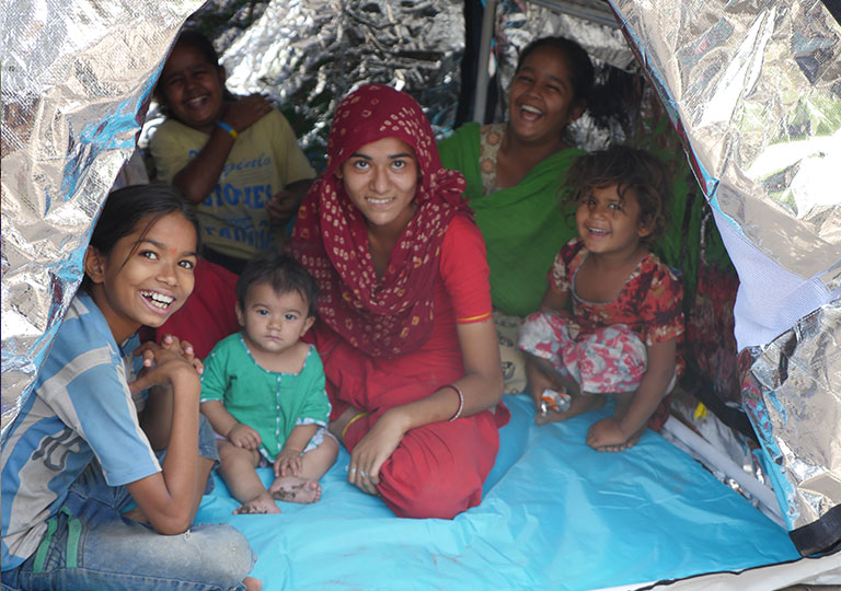 Pictured: WeatherHYDE is fully insulated and lightweight. Designed for women like Khushi, the enclosed tent provides much-needed privacy and dignity.