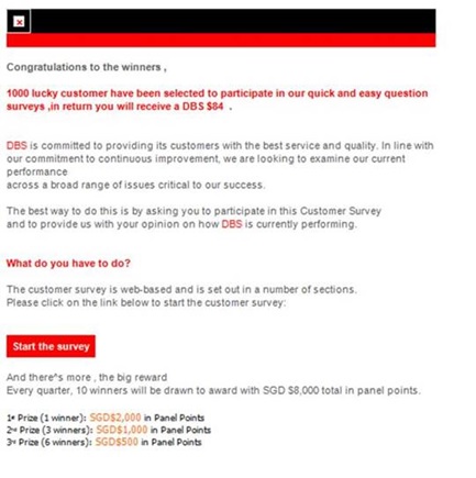 Please note that the official website of DBS in Hong Kong is www.dbs.com.hk, and the bank has no connection to the phishing email involved. We have reported the matter to the Hong Kong Monetary Authority and the Police.
