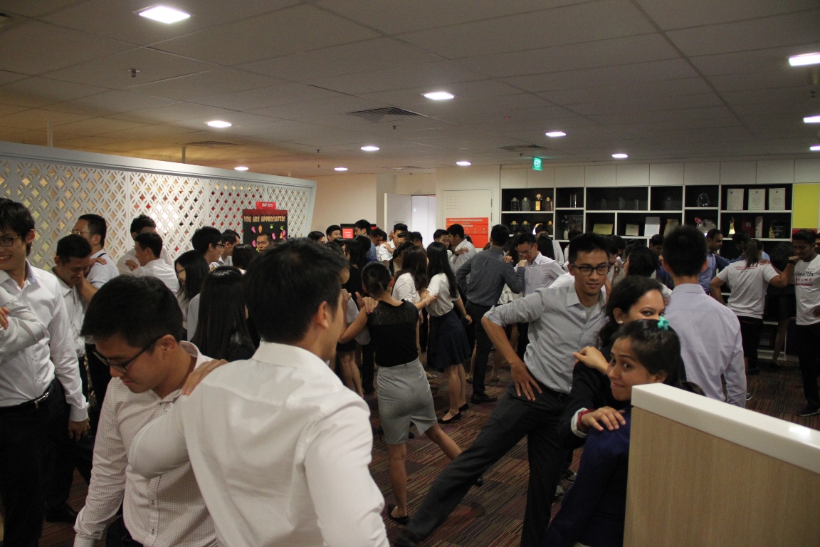 To launch iHealth@DBS, employees were invited to participate in a mass workout at DBS Asia Hub.