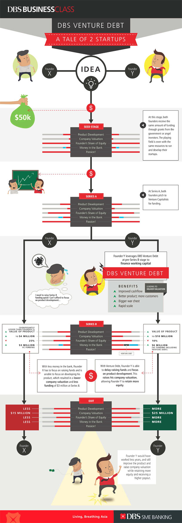 Said Lim Chu Chong, Head of SME Banking, DBS Bank, “As the bank that sparked the development of Singapore, we are pleased to be one of the first banks in Singapore to offer venture debt as an alternative capital-raising option for tech start-ups. Tech start-ups can use venture debt to complement venture capital, and buy more time and flexibility for their businesses to hit key development milestones, which can potentially increase their company valuations. We hope this will be a boost to the start-up eco-system in Singapore and help innovative tech companies scale up and reach profitability at a faster pace.”