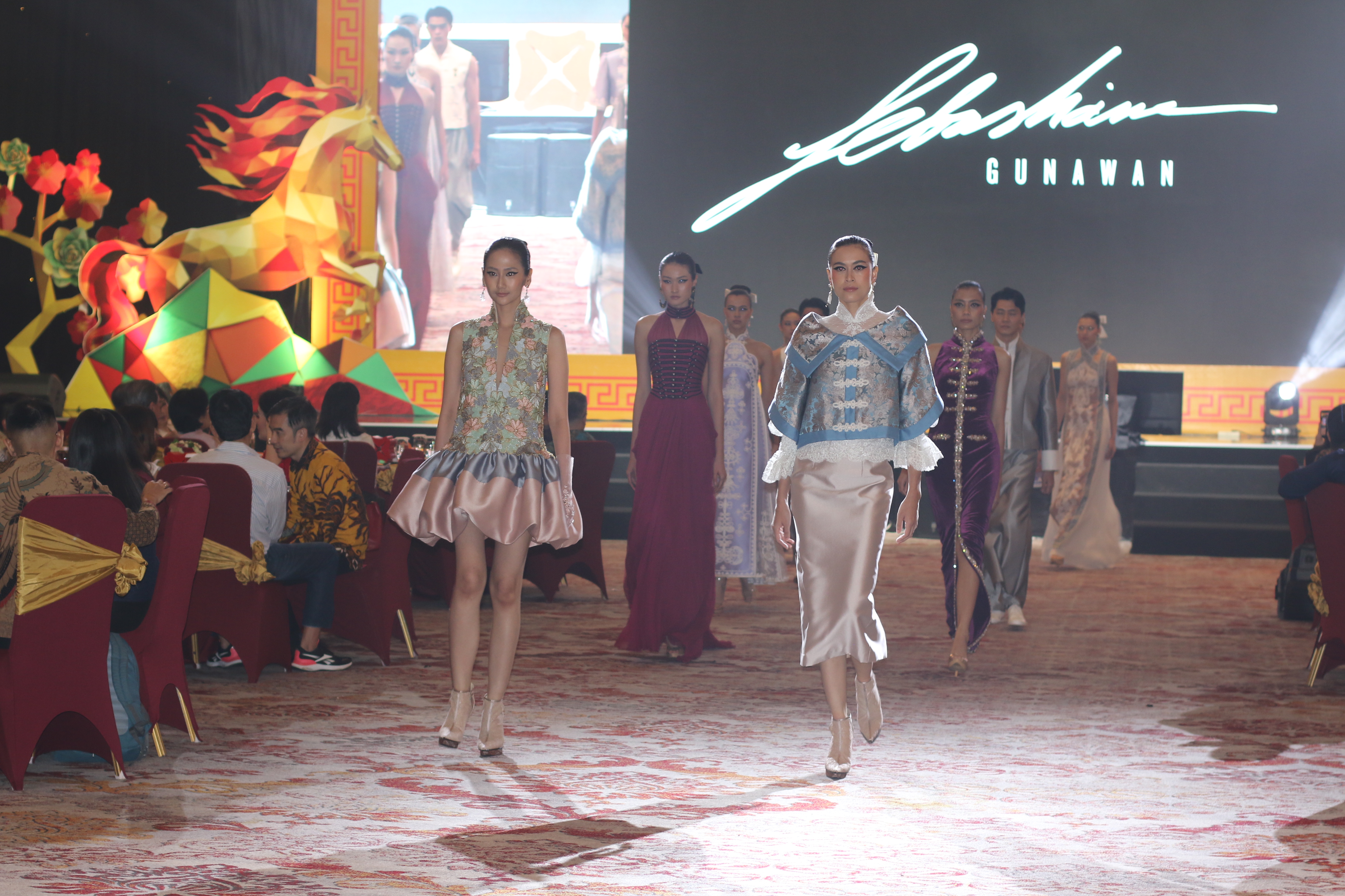 Sebastian Gunawan. Inspired by the character of the Year of the Fire Horse, which is synonymous with energy and rapid change, each design explores the interplay of materials, details, and motifs that reflect this dynamic. To create an even more immersive experience, the show was accompanied by the melody of the Guzheng, a traditional Chinese stringed instrument, bringing harmony between fashion, culture, and a warm festive atmosphere for the guests in attendance.