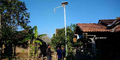Begitu masuk ke Kampung Wisata Edukasi yang terletak di Dusun Ngemplek, Desa Piyaman, Gunungkidul, DIY, kita akan disambut oleh beberapa panel surya terpasang di sejumlah atap bangunan di sisi kanan dan kiri jalan. Panel surya yang pertama kali menarik perhatian kita ada di atap cakruk atau pos jaga. Di malam, kampung ini terlihat terang benderang. Kita juga bisa lihat sejumlah panel surya terpasang di atas genting rumah warga. Nggak cuma itu, di lampu penerangan desa juga terpasang panel surya pada bagian atasnya.