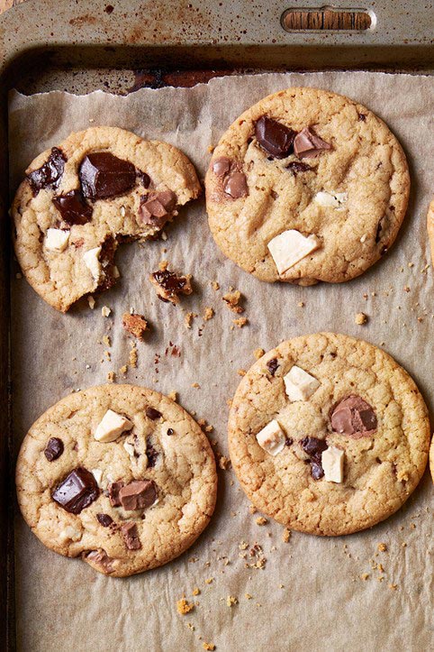 1. Panaskan lebih dulu oven ke 180°C. Siapkan empat buat loyang oven dengan kertas roti.